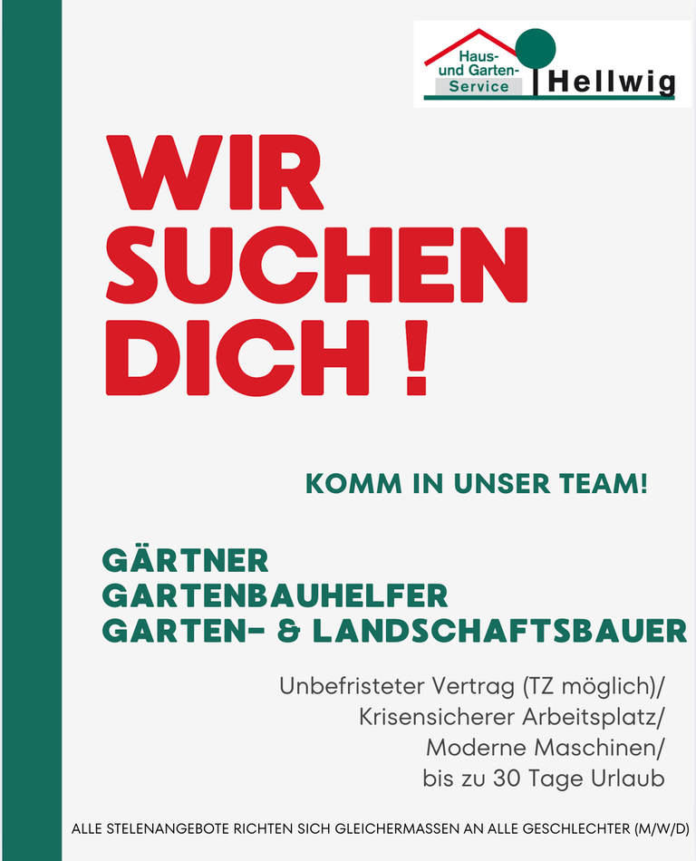 Du suchst nach einer neuen Herausforderung? Ob als Quereinsteiger im Gartenbau (Helfer/-in) oder gelernter Gärtner/-in wir suchen Dich!